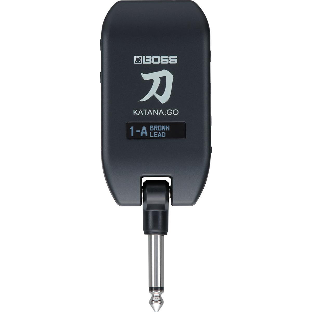 KATANA:GO delivers premium sound for everyday playing without the hassle of amps, pedals, and computer interfaces. Simply plug it in, connect earbuds or headphones, call up a memory, and start rocking. Onboard controls provide access to volume, memory selection, and other essential functions, and you can easily view the current memory and tuner with the built-in display. The rechargeable battery provides up to five hours of continuous playing time, and the integrated 1/4-inch plug folds down to create a pocket-size package that’s ready to travel anywhere.