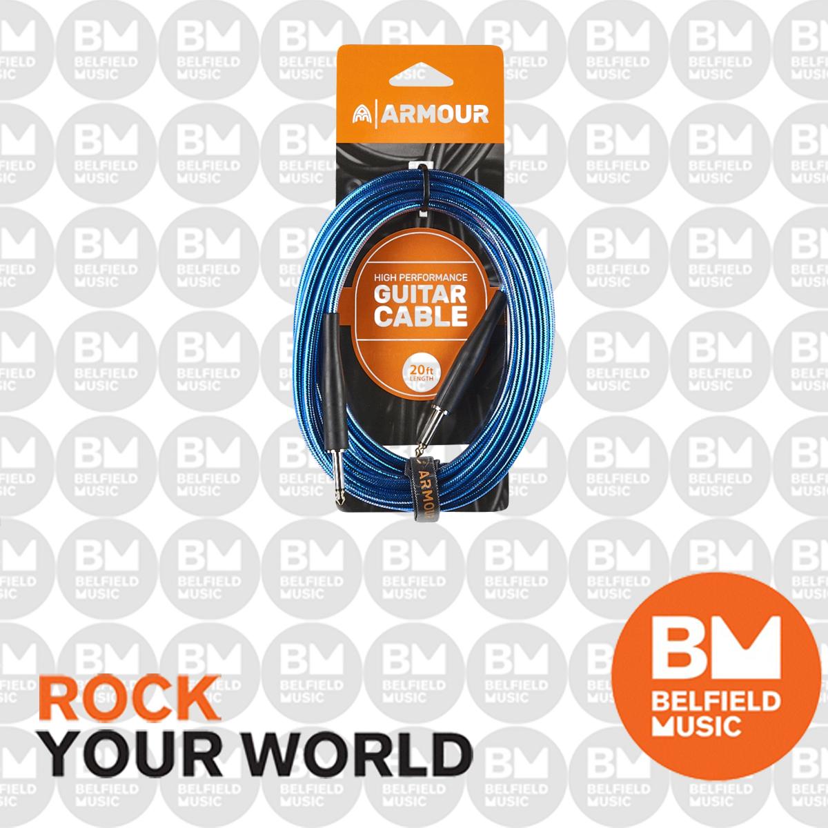 Armour GC20B Guitar Lead 6m 20ft Instrument Cable - Transparent Blue
