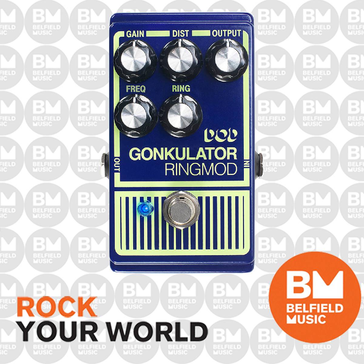 Pairing an adjustable carrier signal with a revamped distortion circuit, the DOD Gonkulator essentially brings two effects into one chassis with controls for ring, frequency, gain and distortion. Capable of all the weird modulation goodness of the ’90s original with the added ability to cover distorted experimental ground, this pedal pushes boundaries and makes statements with modulating effects limited only by imagination. From bell-like clangs to spastic robotic breakdowns, the Gonk demands attention.
