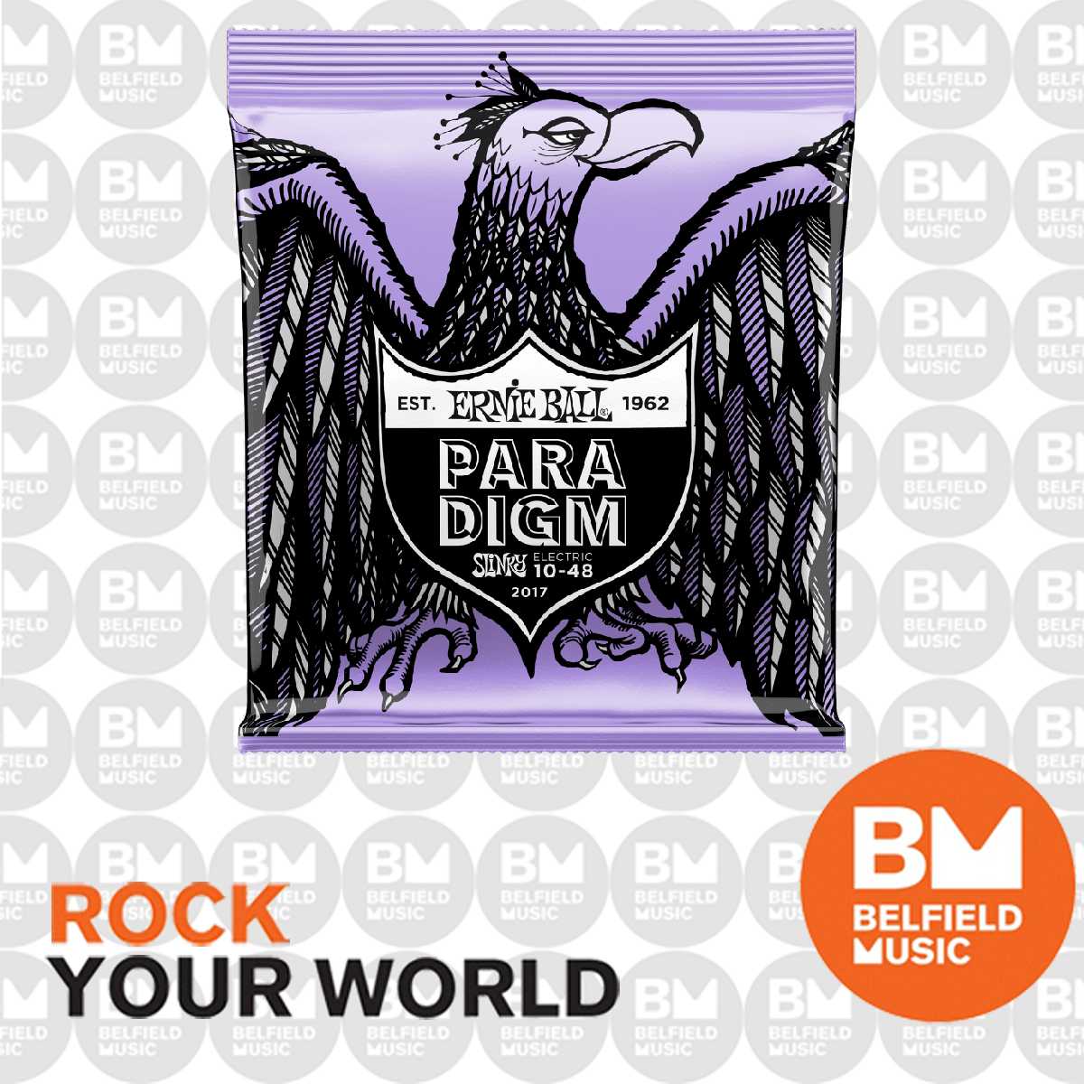 Ernie Ball Slinky Paradigm Electric guitar strings provide unprecedented strength and longer life while retaining 100% Slinky tone and feel. Ernie Ball's industry leading ultra-high strength steel is included in both the wound and plain strings along with a patented reinforcement at the ball end twist of each plain string to provide superior tensile and fatigue strength for strings that lock into tune fast and hold up under the most stressful playing styles and conditions. The coupling of Ernie Ball's Everlast nanotreatment with breakthrough plasma enhanced wrap wire provides added corrosion resistance and reduced accumulation of tone-robbing buildup and debris. Experience the first set of longer lasting strings that are worth playing with all benefits and no compromises. Gauges .010, .013, .017, .028, .038, .048