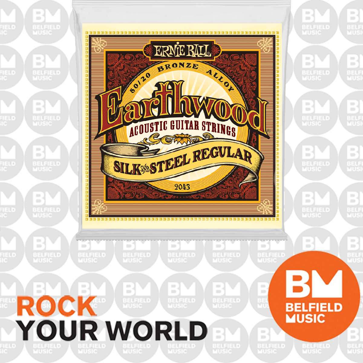 Ernie Ball Earthwood Silk and Steel Regular 80/20 Bronze acoustic guitar strings are made with an 80/20 bronze alloy wrap, along with a layer of silk between the wrap and steel core. The silk produces a more mellow sound and makes the string feel more comfortable while reducing finger noise. Gauges .013, .017, .026, .034, .046, .056.