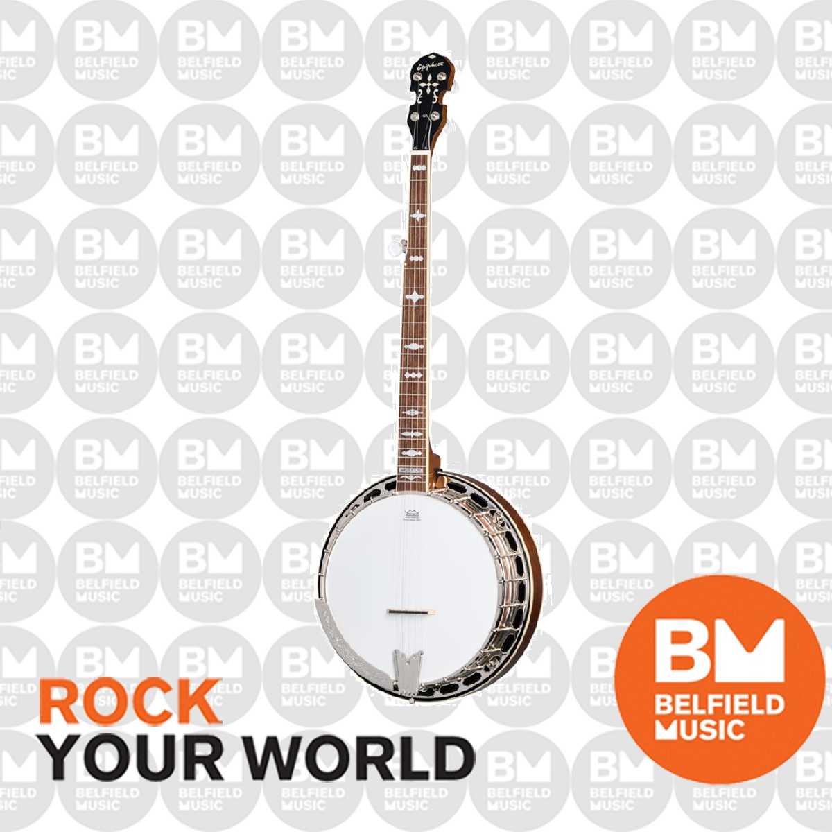 Epiphone has been making banjos since the 1920s, and this Inspired by Gibson Mastertone Classic Banjo model recreates one of the world's most desirable and famous banjos–the classic Gibson RB-3 Mastertone 5-string banjo from the 1930s–at an accessible price. The Epiphone Mastertone Classic Banjo features a mahogany resonator, a 3-ply mahogany rim, and nickel hardware. The 26.4" scale-figured mahogany neck has a laurel fretboard with 22 medium/tall frets and is adorned with Style 3 mother-of-pearl inlays and a Mastertone Block inlay at the end of the fretboard. A hard-shell case is also included.