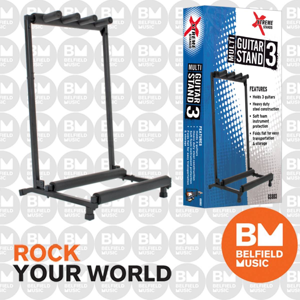 Xtreme GS803 Multi Guitar Rack Triple Stand Fits 3 Guitars For Electric Bass Acoustic
