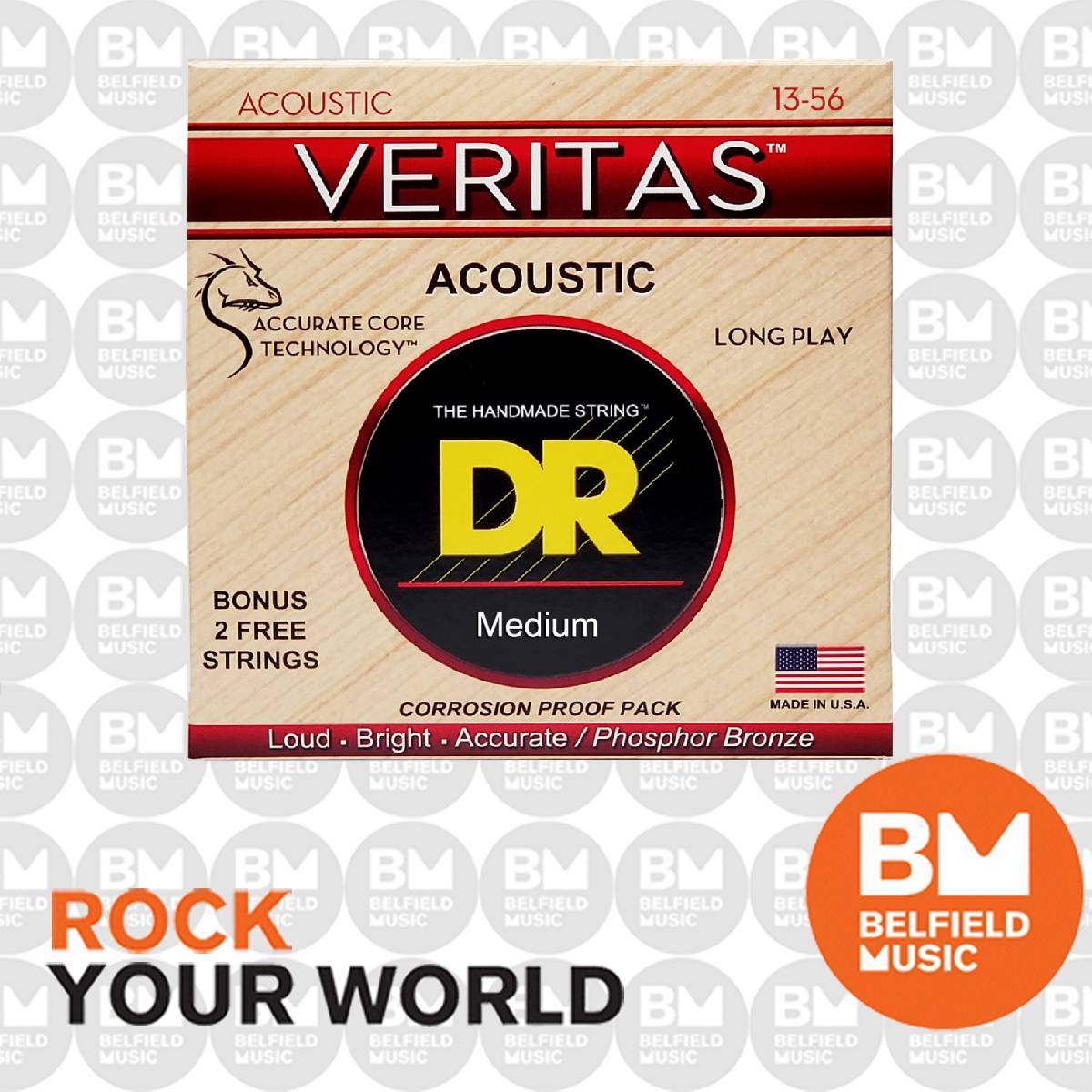 All VERITAS™ Acoustic sets include both standard plain steel AND Xenon Power-Plain™ strings, which produce a bigger tone to balance with the wound strings.