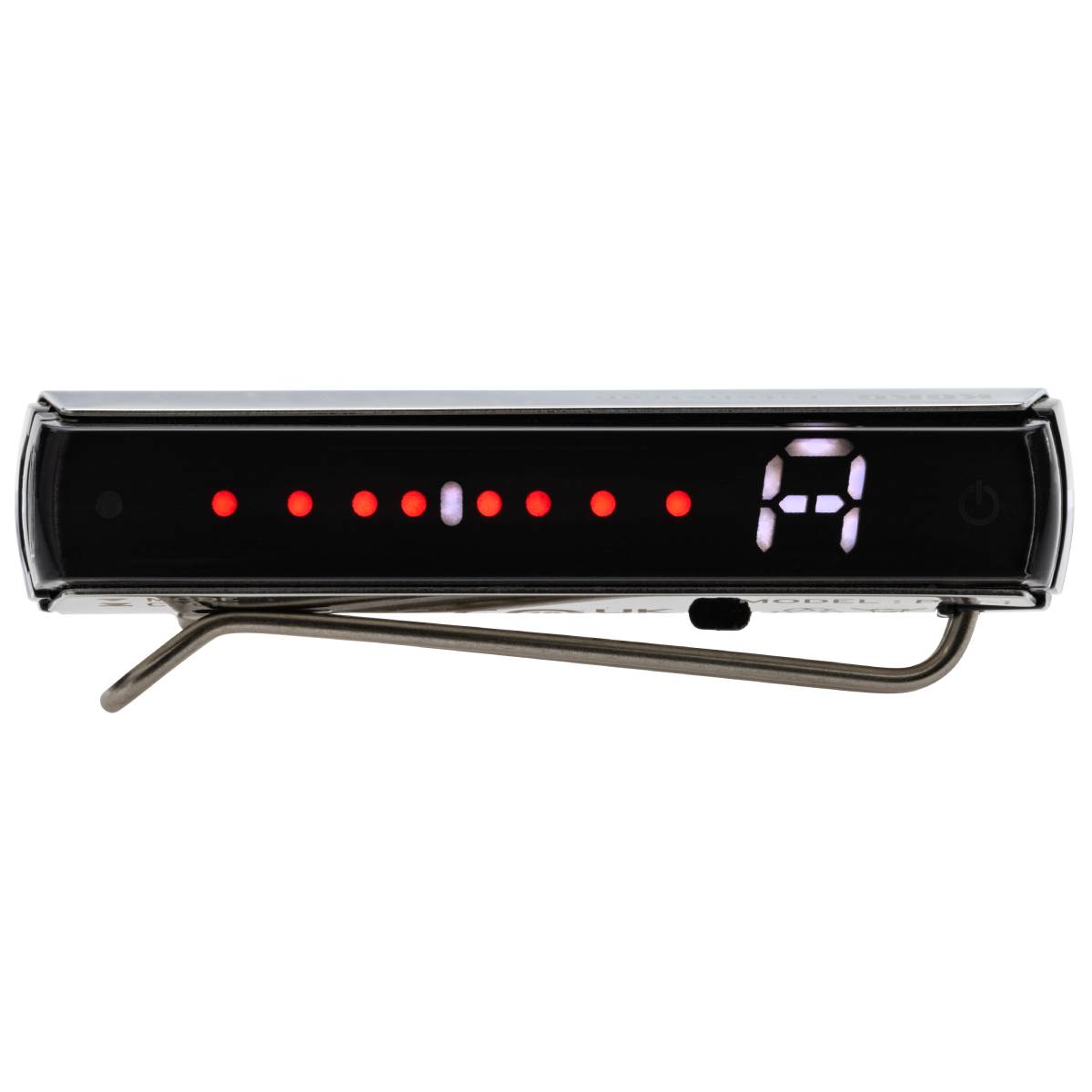 The world's first strap-mounted tuner: accurate, easy to use, packed with features and with a powerful display.
