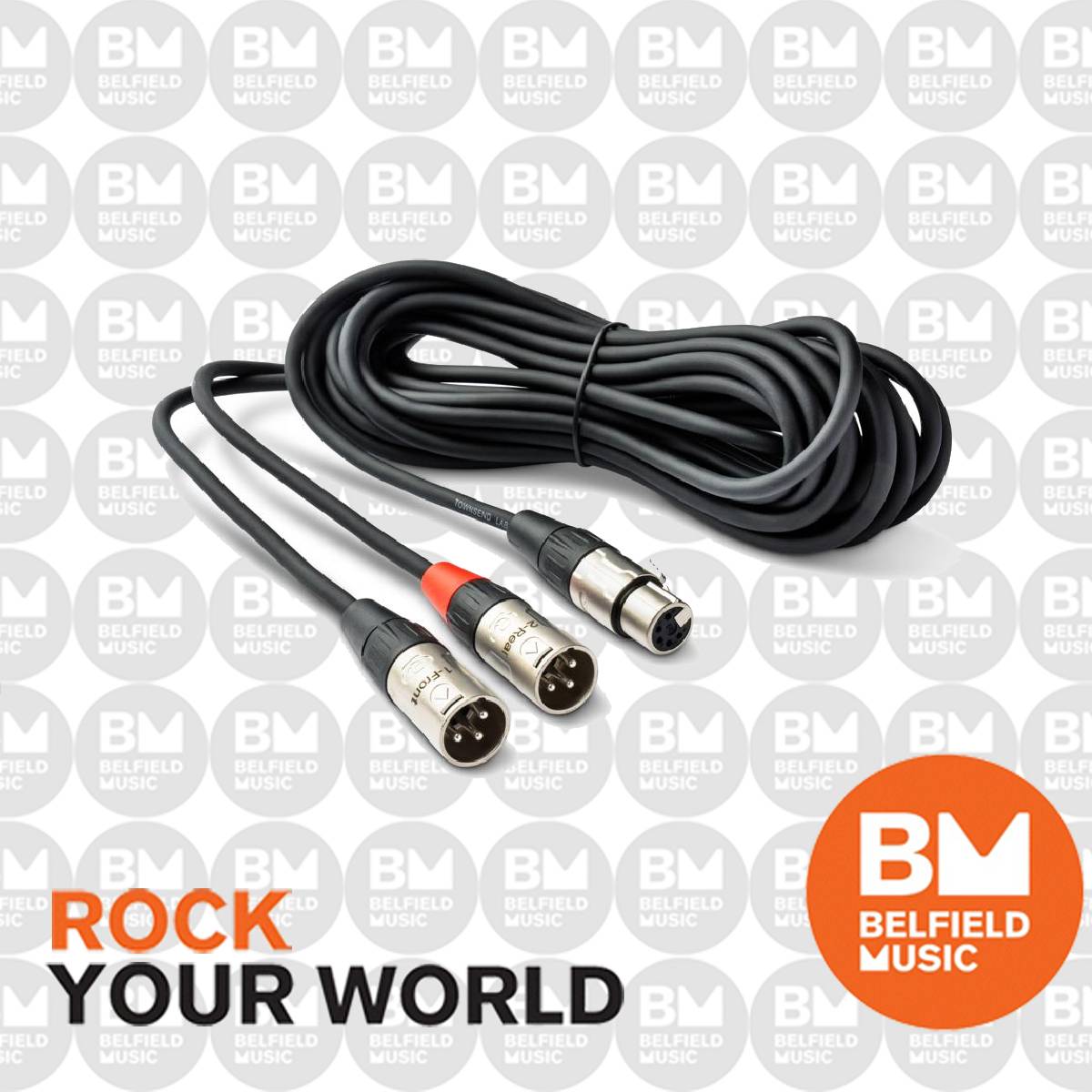 Replacement 25' microphone cable with 5-pin XLRF and dual 3-pin XLRM connectors. Compatible with Sphere LX & DLX.