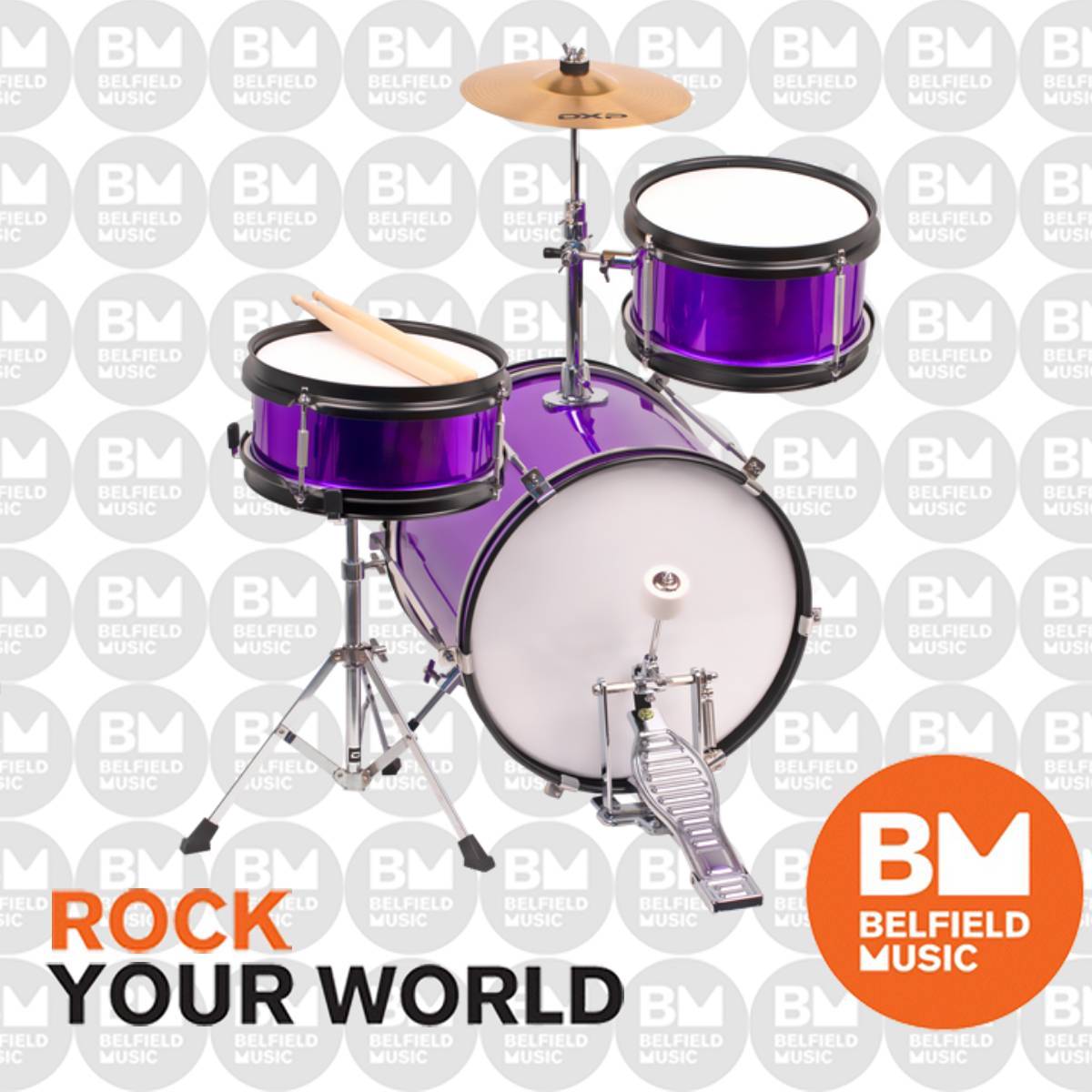 The kit includes a bass drum, tom, snare, and cymbal setup with essential hardware and sticks, making it easy to assemble and start playing. Please note: drum stool is not included.