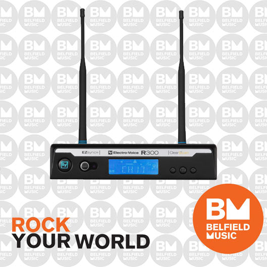 With one-touch ClearScan and EZ sync transmitter update the R300 is as easy to setup anduse as any entry level wireless microphone. But the R300 is also a true rack mountable metal receiver, metal body pack and handheld transmitters, and remote mountable antennas normally found in higher priced professional systems.