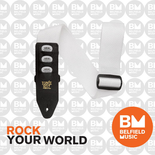 Ernie Ball 4259 Polypro Guitar Strap White w/ Pickholder
