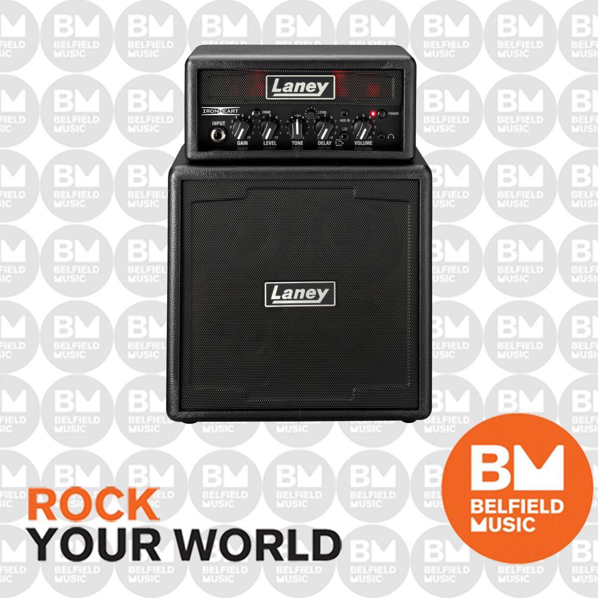Styled after the iconic Laney IRONHEART range, the Laney MINISTACK is a small stack with a BIG sound, perfect for home use, backstage or practice. The MINISTACK-IRON model features a clean & drive channel, gain, tone and volume dial, guitar input, Aux in, On-board tape style digital delay with level control, headphone socket and the unique Laney LSI – Laney Smartphone Insert. The LSI allows you to connect your amp to your favourite guitar tone generating app to access all your favourite guitar tones. Loaded with 4 x 3” drivers the MINISTACKS sound as good as they look, with masses of low-end punch and mid-range clarity, great for getting inspired. Just like the full size IRONHEART stack, just smaller - it even glows the same!