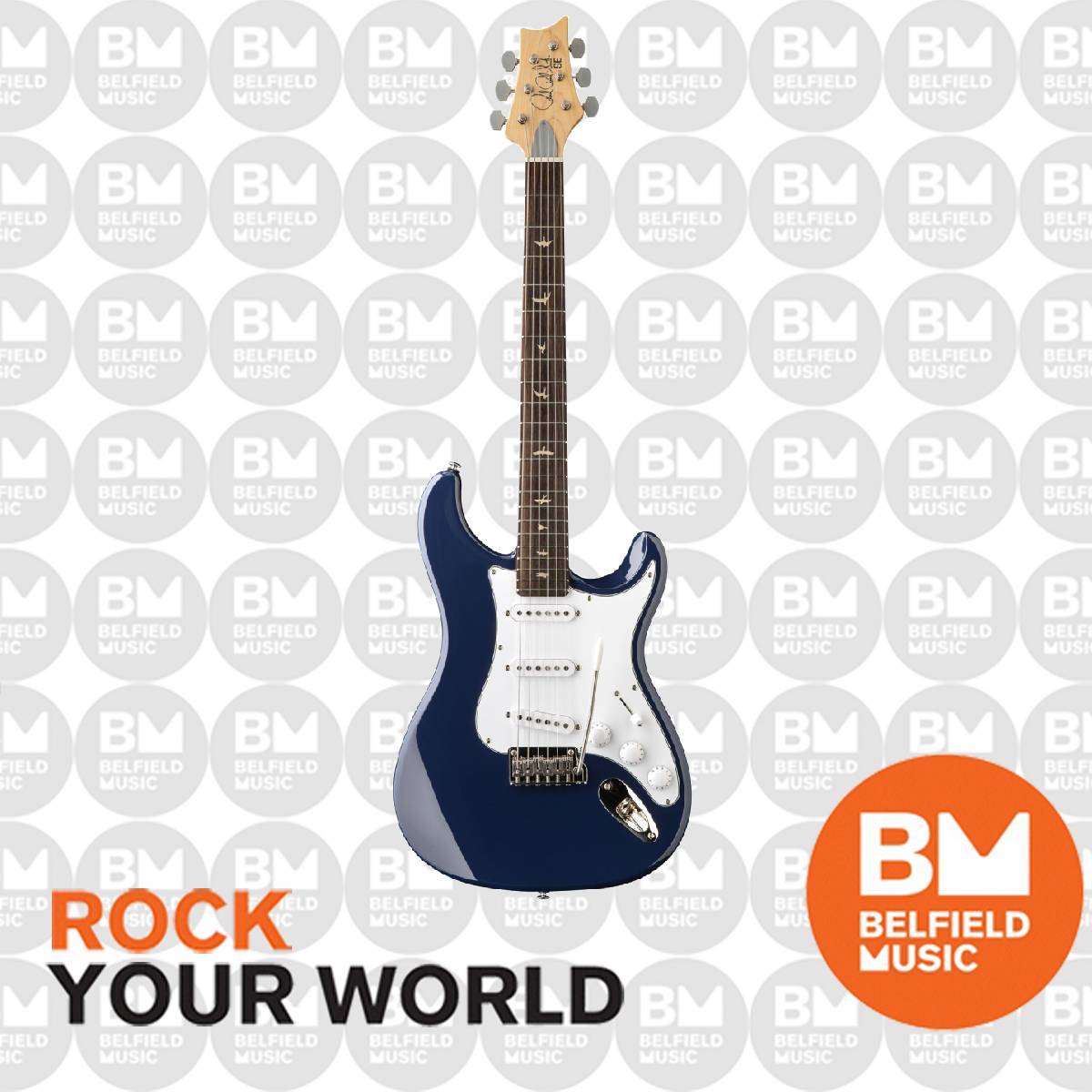 The PRS SE Silver Sky starts with a poplar body, bolt-on maple neck, and rosewood fretboard with PRS trademark bird inlays. The 22-fret, 25.5” scale length neck features the original 635JM carve and an 8.5” fretboard radius, so the PRS SE Silver Sky will feel right at home. Plug it in, and the three single-coil 635JM “S” pickups will bark and sing. This guitar is anchored by a two-point steel tremolo, synthetic bone nut, and vintage-style tuners. Other design features include the PRS Silver Sky inverted headstock shape and the PRS double-acting truss rod (accessible from the front of the headstock for ease of use). Ships with PRS Classic 10-46 strings and gig bag.