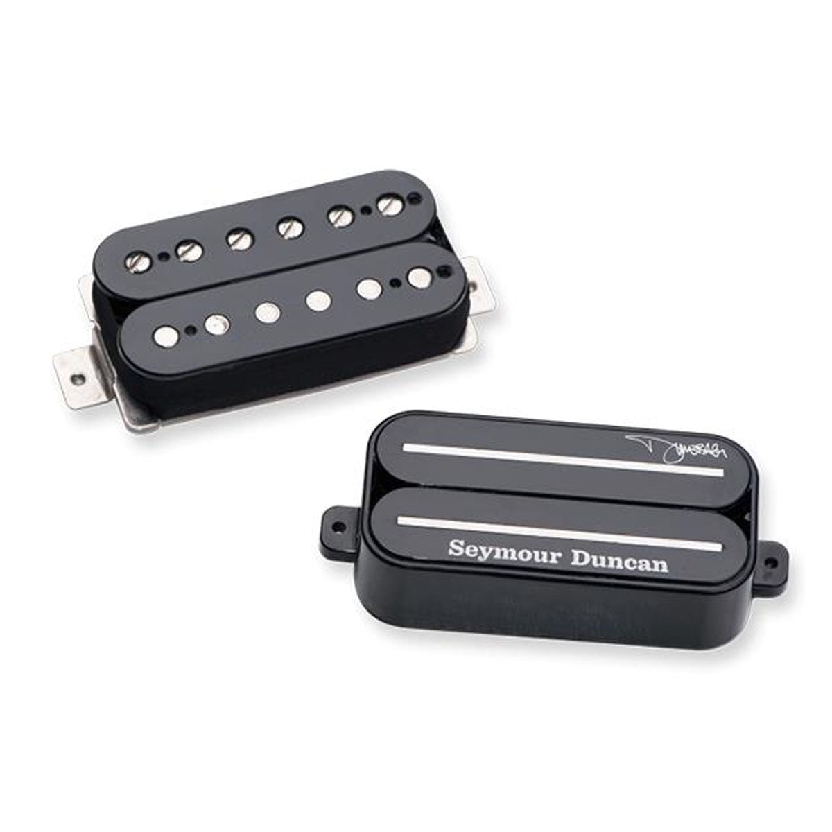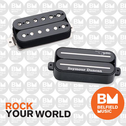 Dime's bridge pickup delivers crunchy pick attack, scooped mids and just the right amount of saturation. He wanted his signature humbucker to have a thick crunch that sags just a little when you really lay into it. Combine that with a full, tight low end response, a ceramic magnet and dual stainless steel blades, and you have the Dimebucker. Dime preferred the warm, smooth power of a '59 bridge pickup in the neck position to balance with his signature bridge Dimebag pickup. It gave extra teeth to his solos. In a 2004 interview Dimebag described the tone of the Dimebucker; It's very saturated, not to the point where its overly fuzzy but it has a smooth and crunchy distortion tone. It will give you some extra gain, but it won't go so far that your sound breaks up and is going crazy. You get that warm tone with the distortion mixed in and it has the low end that's kicking you in the butt while the top end is cutting your face off in the right way, but not ripping your face off. If you ever listen to a Pantera record, that's what you'll hear through this pickup. The complete set is hand built in Santa Barbara, CA. The bridge Dimebucker uses a ceramic bar magnet, dual stainless steel blades, 4-conductor lead wire for multiple wiring options, and is vacuum wax potted for squeal-free performance. The 59 Bridge is vintage inspired, right down to the cloth braid hookup wires. Also wax potted.
