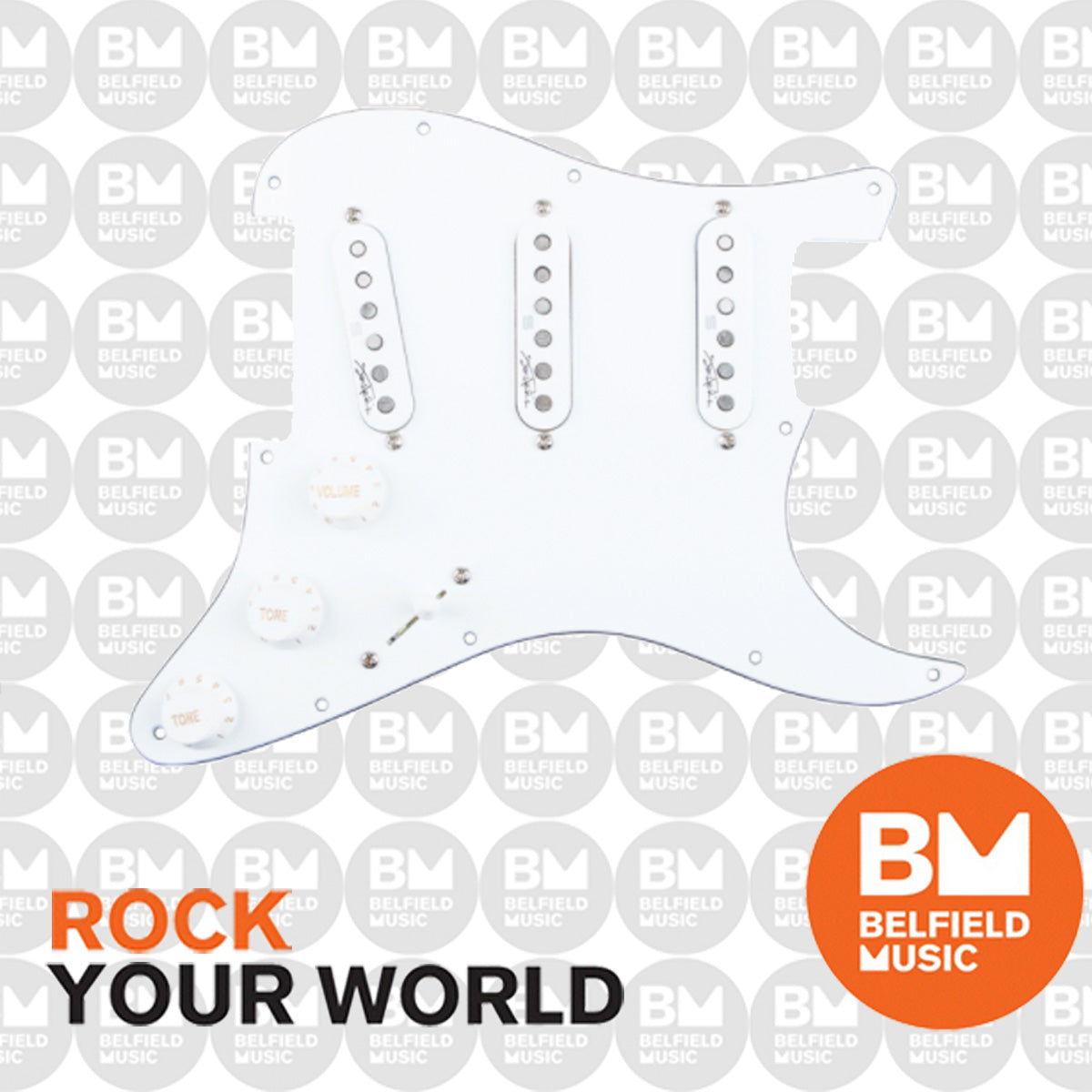 On March 28, 1968, Jimi Hendrix asked a young Seymour W. Duncan to walk his guitar up onstage at his show at Xavier University in Cincinnati, Ohio. That Strat was loaded with pickups Seymour had wound just for Jimi, and that unforgettable night would set in motion Seymour’s future – and his legacy almost five decades later. Now you can be a bit closer to Jimi’s world with our Jimi Hendrix™ Signature Loaded Stratocaster Pickguard. The Jimi Hendrix Signature Loaded Pickguard houses those pickups in a pre-loaded 3-ply white pickguard and is available with either a standard-angle bridge pickup route or a Voodoo route (reverse-angle bridge route). Like Jimi’s music, the Jimi Hendrix™ Signature Strat Set pickups have their roots in the traditional but with an eye on the future. Each is custom wound for a richer, melodic tone. The bridge model has an aggressive attack that cuts through while staying true to his iconic lead tone. The neck pickup sounds thick and full and is great for chord work, bluesy melodies, double-stops and Jimi’s signature hybrid chord/melody style. And in the in-between positions, there’s plenty of that classic Strat ‘quack.’ To help you to get even closer to Jimi’s earth-shattering tone, each pickup is made with a reverse magnet stagger to capture the effect of playing a right-handed guitar upside-down and restrung for a lefty. The Jimi Hendrix Signature Loaded Pickguard comes packed with a little bit of history as well! Each box will come with a memorabilia booklet of Seymour’s experience with Jimi, as well as a Jimi Hendrix sticker from that era. The 3-ply white pickguard features 250K pots, a 5-way pickup selector switch and .047 caps. The pickup covers showcase Jimi’s signature. Please note that the Voodoo style will only fit guitars with either a swimming pool or humbucker route. The Jimi Hendrix™ Signature Loaded Stratocaster Pickguard is fully authorized by Authentic Hendrix LLC.