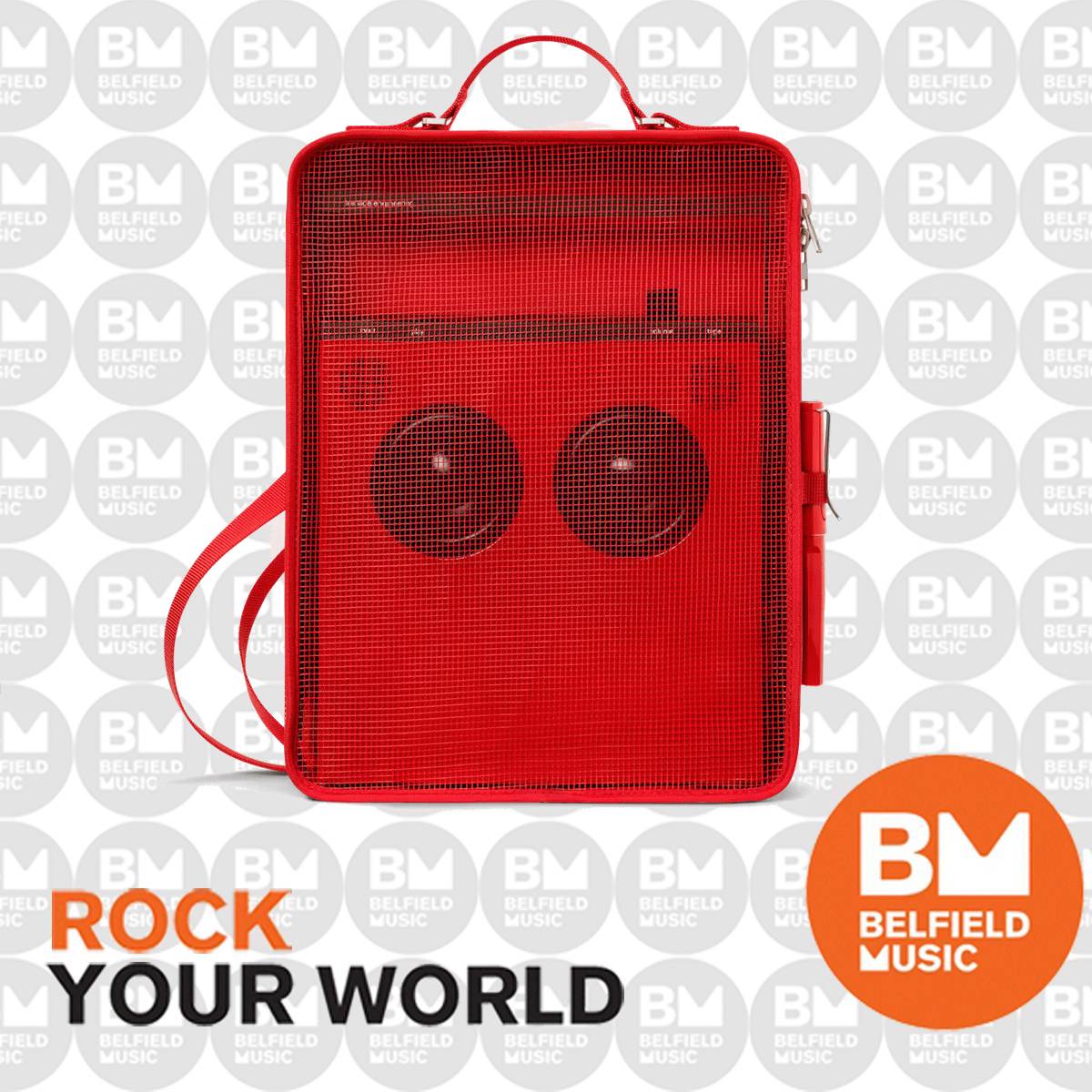 teenage engineering OB–4 mesh bag in RED is custom-made to fit an OB–4 magic radio. This new design also fits a 13" laptop, and detachable straps mean it can be worn as a shoulder bag or backpack. The mesh front ensures great sound quality for playing your OB–4 on the move.
